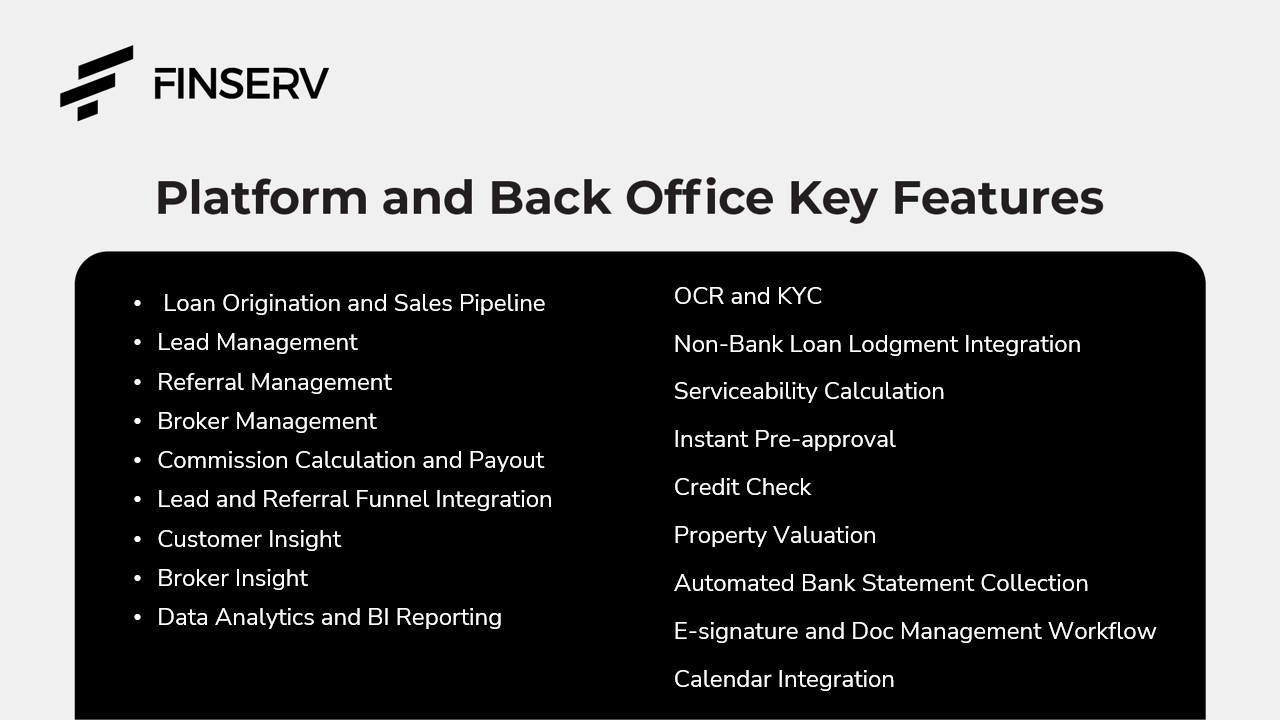 Discover FINSERV the smart AI tech end-to-end platform that empowers brokers, operating as a single gateway to non-bank solutions. FINSERV allows brokers to quickly find dynamic non-bank options, provide fast assessments and a path to funding for their clients that traditional lenders overlook.
